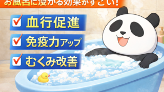お風呂に浸かることで得られる血行促進、むくみ改善、免疫力アップなどの健康効果を分かりやすく解説。シャワー派必見!健康パンダが入浴のメリットを紹介します。